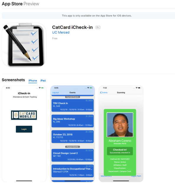 The app is free to UC Merced student and staff and works across iOS and Android devices. Usage of iCheck-in requires a valid UCMNetID account from the University of California, Merced.