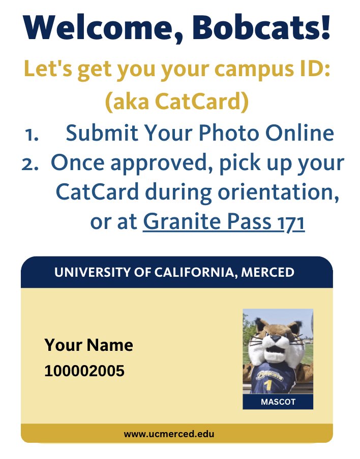 To learn more about CatCard, click here. If you have any questions, please email catcard@ucmerced.edu.